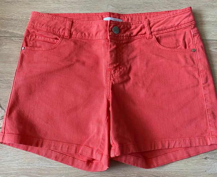 Short Promod corail 98% coton 2% elasthanne 3 poches à l’avant 2 poches à l’arrière
