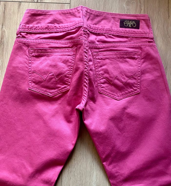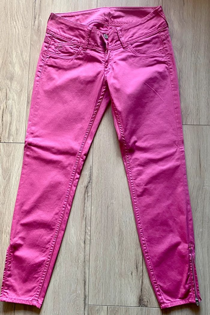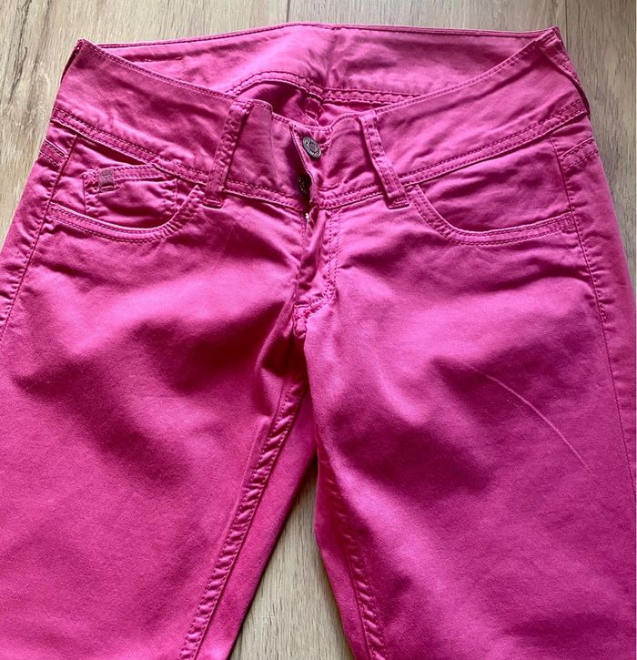 Pantalon Le Temps des Cerises rose Taille 28 (38) 3 poches à l’avant 2 à l’arrière Coupe 7/8e Fermetures en bas 97,2% coton 2,8% elasthanne