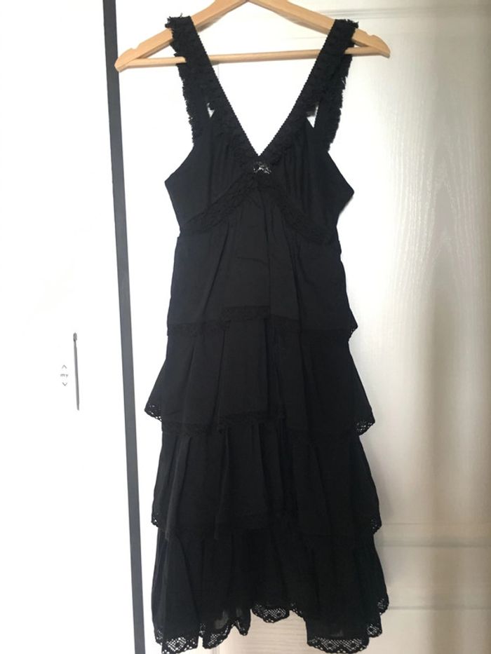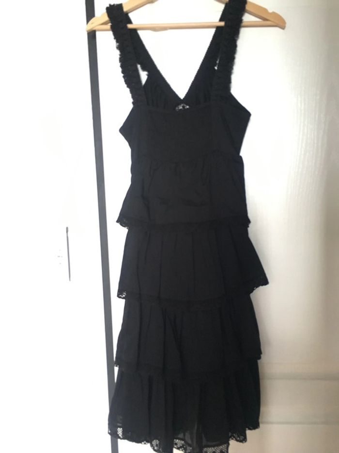 Robe Naf Naf noire taille 34 épaules découvertes volants et dentelle décolleté V