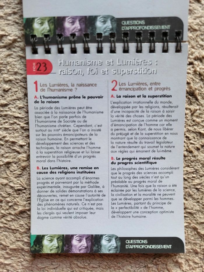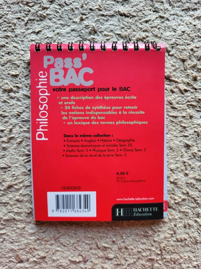 . 24 fiches pour réviser les principales notions et les auteurs du programme de philosophie . Des synthèses bien organisées pour mieux mémoriser et réussir son épreuve de Bac . Bon état, pas d'usure mais le verso de la couverture est légèrement taché (voir photo) ⭐️ N'hésitez pas à visiter mon dressing : réductions sur les lots sont activées ✨️ Terminal