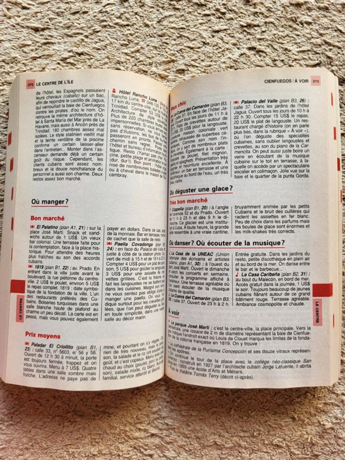 . Guide du Routard sur Cuba des Éditions Hachette . 420 pages pleines d'informations, de plans, de conseils et de bonnes adresses . Très bon état, sans usure ⭐️ N'hésitez pas à visiter mon dressing : réductions sur les lots sont activées ✨️ Vacances