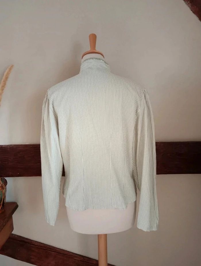 Chemisier blanc rayé vert broderie fleur Cotonnade - photo numéro 5