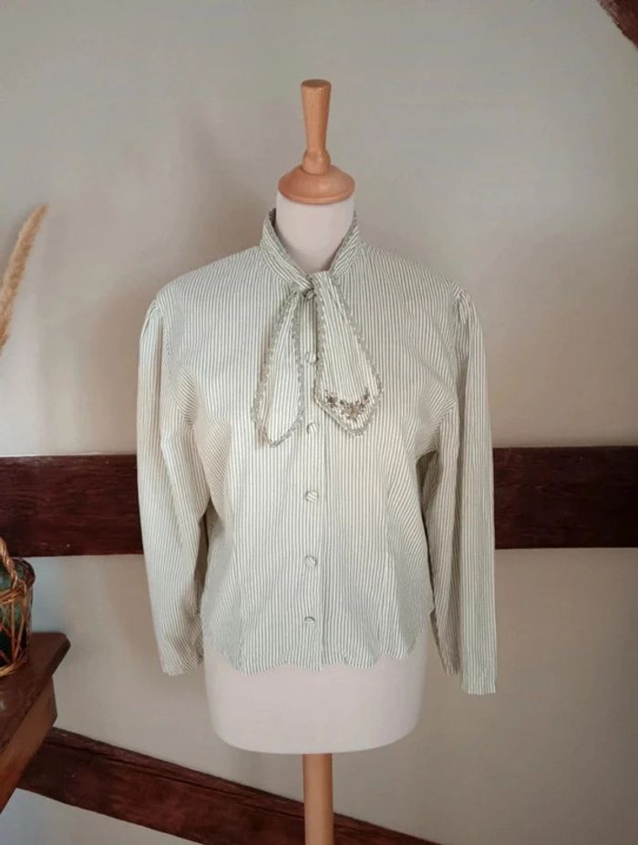 Chemisier blanc rayé vert broderie fleur Cotonnade - photo numéro 2