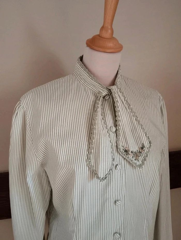 Chemisier blanc rayé vert broderie fleur Cotonnade - photo numéro 3