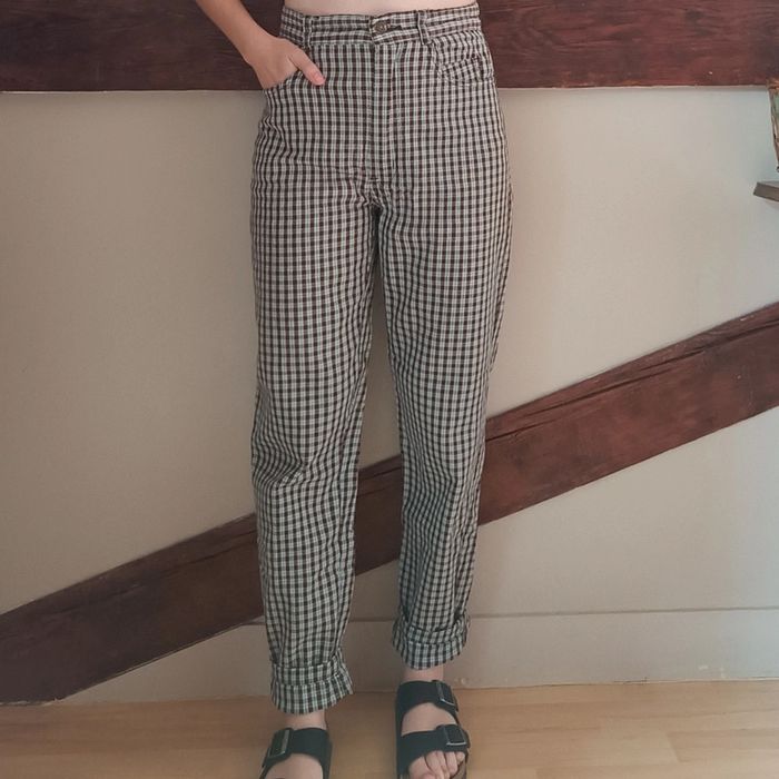 💐 Réductions sur les lots 💐 2 articles : -5% 3 & 4 articles : -10% 5 articles et plus : -15% ⚠️ Pas d'envoi Vinted go, merci Étant une entreprise déclarée payant des charges, merci de respecter mon travail en ne le bradant pas 🙏 ✨ Pantalon coupe jean mom taille haute années 90 à carreaux bleu ciel et marron 3 Suisses Étiquette matière manquante, sûrement du coton ou coton mélangé Il a déjà été beaucoup porté, le tissu est un peu plus fin au niveau de l'entrejambe mais reste résistant - prix en conséquence Taille 36 Je le porte sur un 36 sur les photos et mesure 1m61 📏 Dimensions à plat : largeur taille 35cm, fourche 29cm, hanches 50cm, longueur 103cm #desibellesfripes36