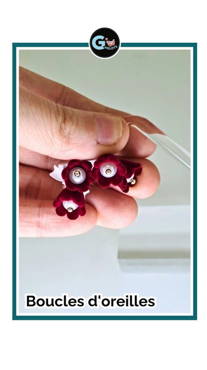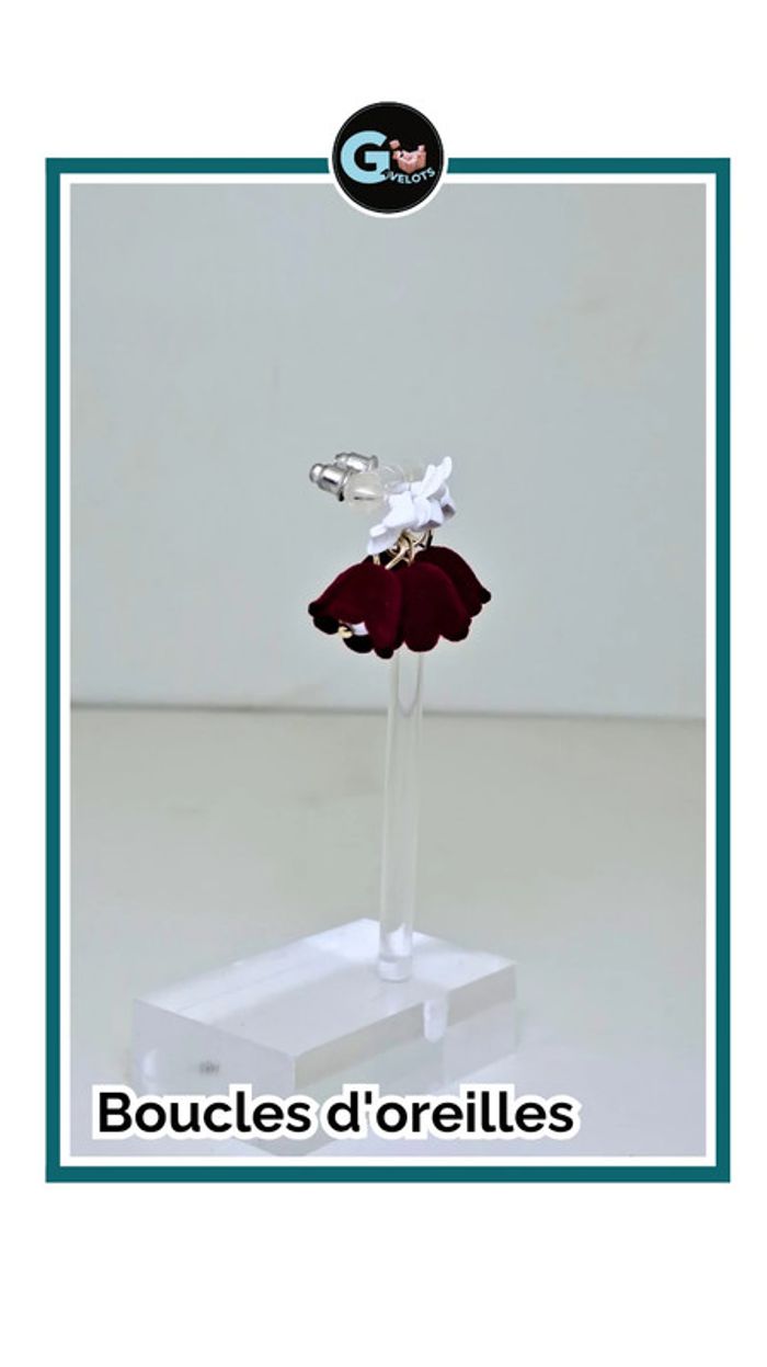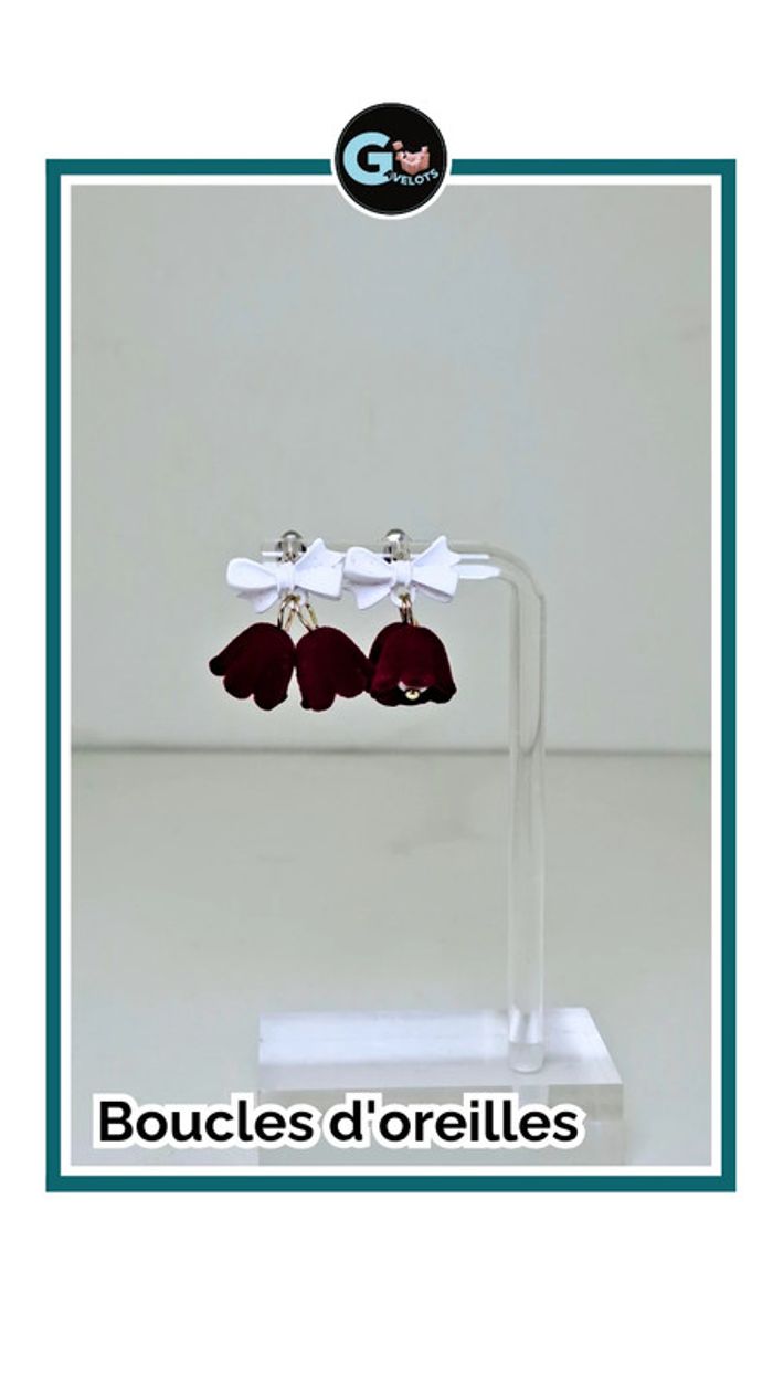 🦚Boucles d'oreilles fantaisie petits cloche les fleurs de couleur bordeaux fond effet velour, petite perle blanche à l'intérieur. Boucles d'oreilles en très bon état, jamais portée 🦚Dressing trier par # dans mon " à propos ". #gavelotsbijoux #gavelotsBC