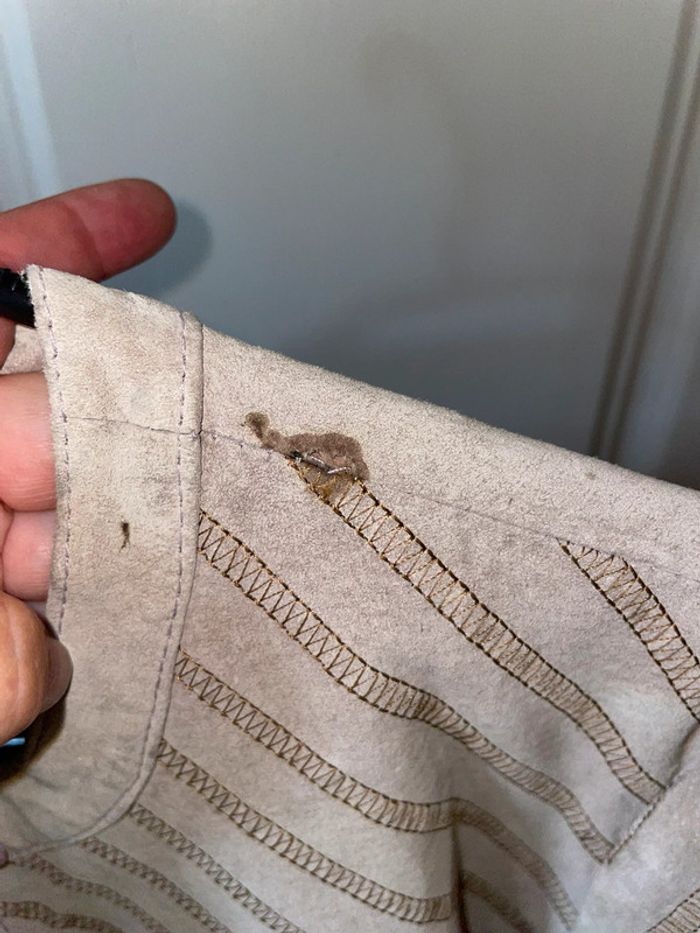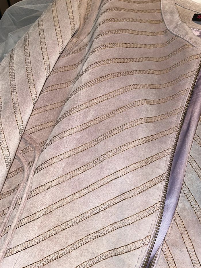 Veste en croûte de porc Taille 40 Un défaut à l’épaule, le reste RAS La vraie correspond à la photo avec l’étiquette la marque.
