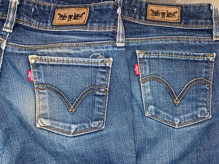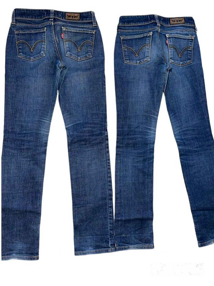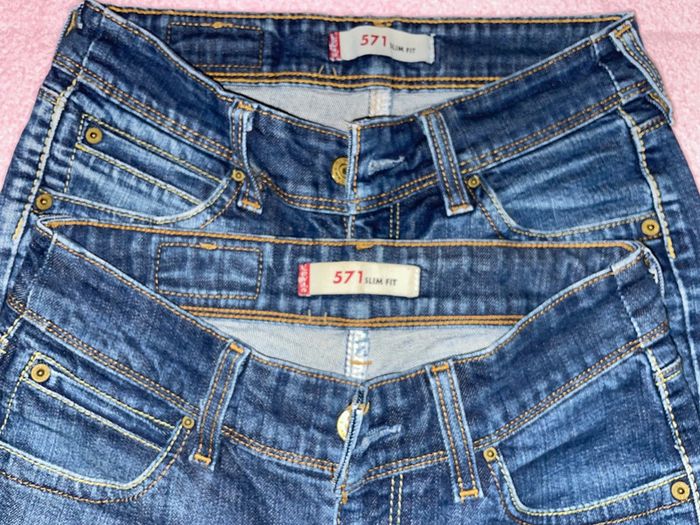 Lot de 2 jeans identiques #levis #levisjeans #slimfit #slimfitjeans Taille 28x34 Mesure taille à plat: 34 cm Des usures en bas de jambes…mais restent encore bien mettables.