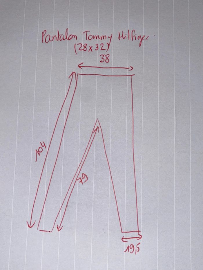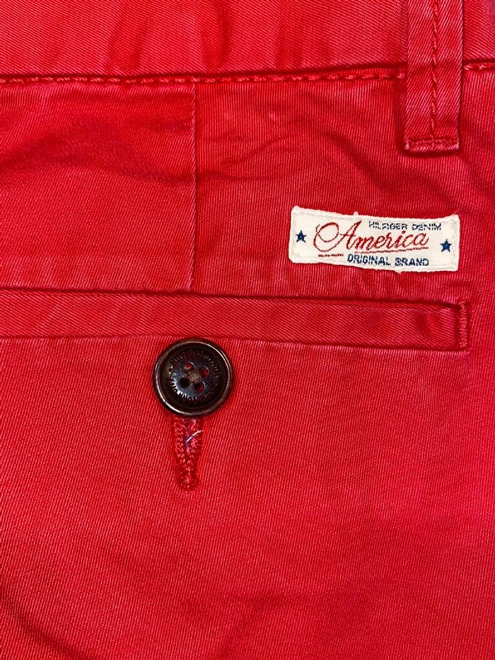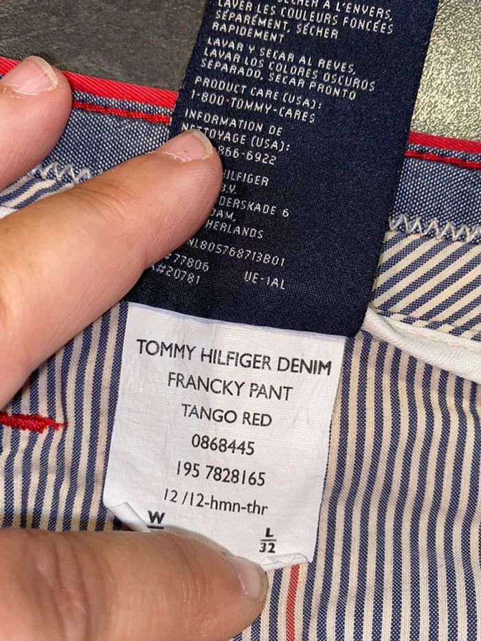 Pantalon rouge #tommyhilfiger Taille 28x32 Voir dimensions pour éviter tout désagrément . Un petit défaut a une poche arrière d’où le petit prix sinon RAS,