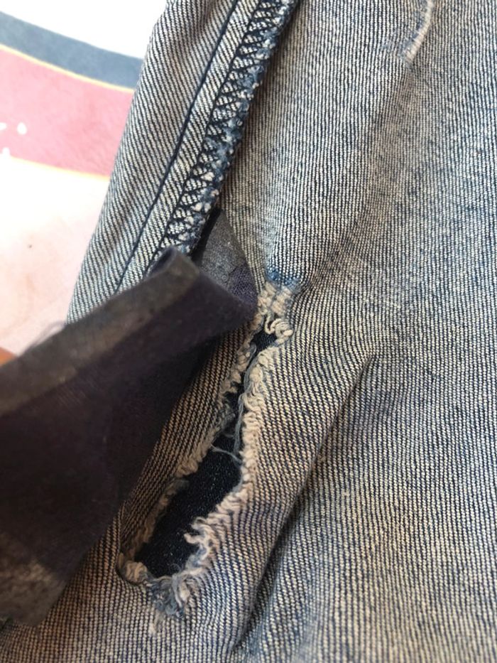 Jean troué jennyfer Taille 34 Les pièces intérieures sont décollées.