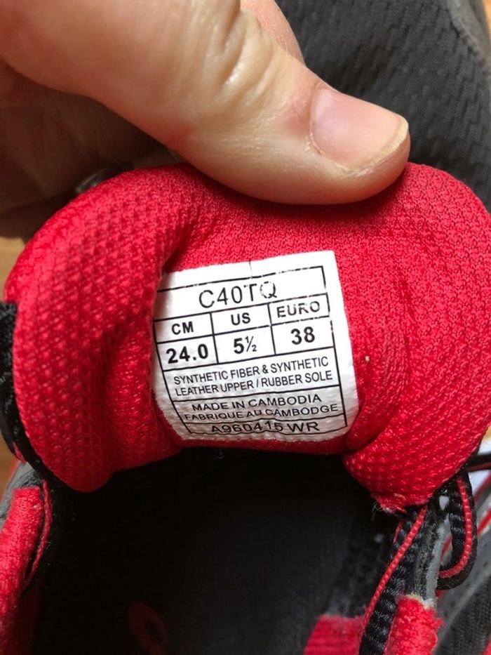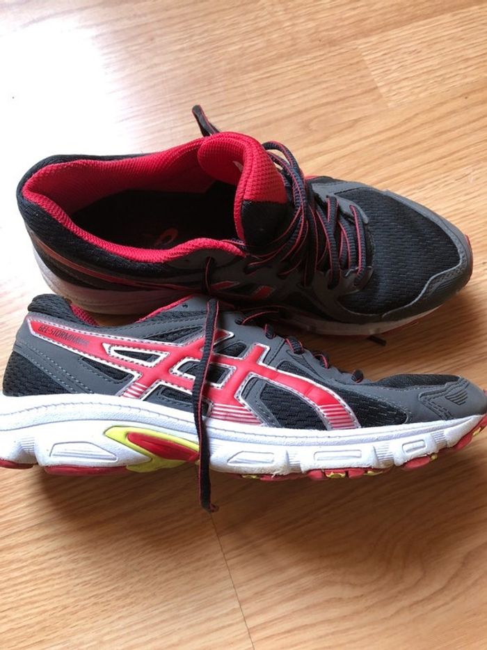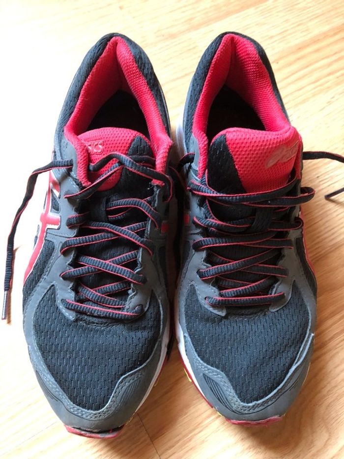 baskets asics pointure 38 Bien que peu portées, je me suis prise un trottoir qui a abîmé un bout(juste à recoller) Semelles extérieures : RAS
