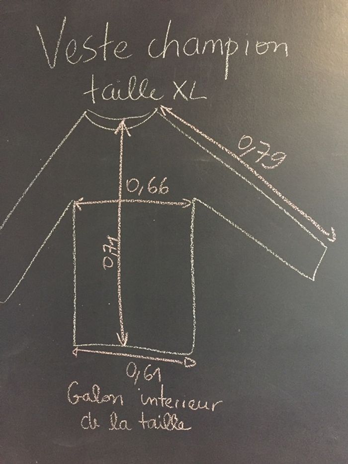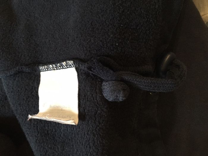 veste champion taille XL Marine un peu délavé Une micro tâche en bas, que je viens de gratter avec mon ongle et qui s’estompe 😉