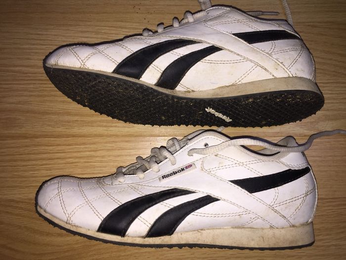 Baskets reebok Pointure 36 Peu portées. Sales, mais je vais tacher de les laver avant de finaliser la transaction.