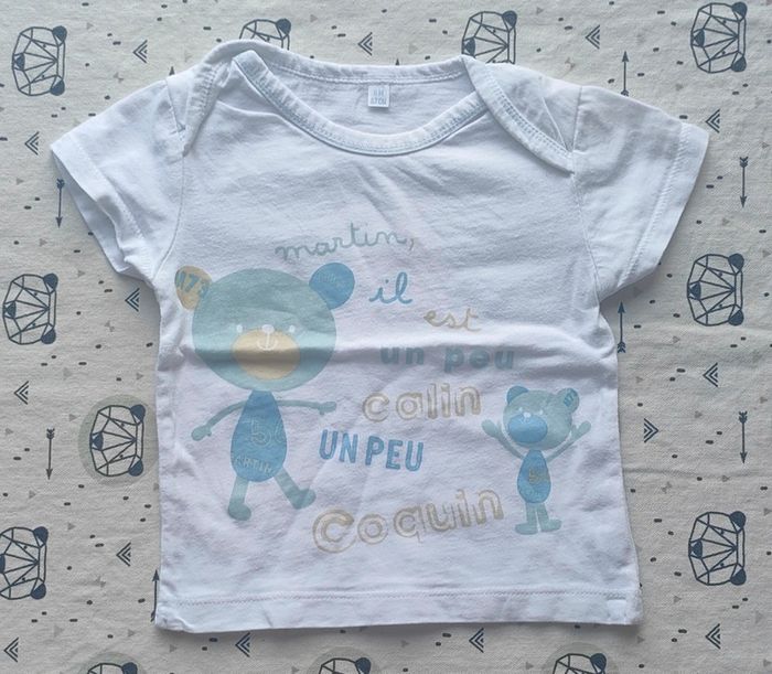 Tee-shirt blanc avec d'un ours avec écriture en très bon état sans marque pour garçon taille 6 mois #neezia33240tshirtgarçon6mois