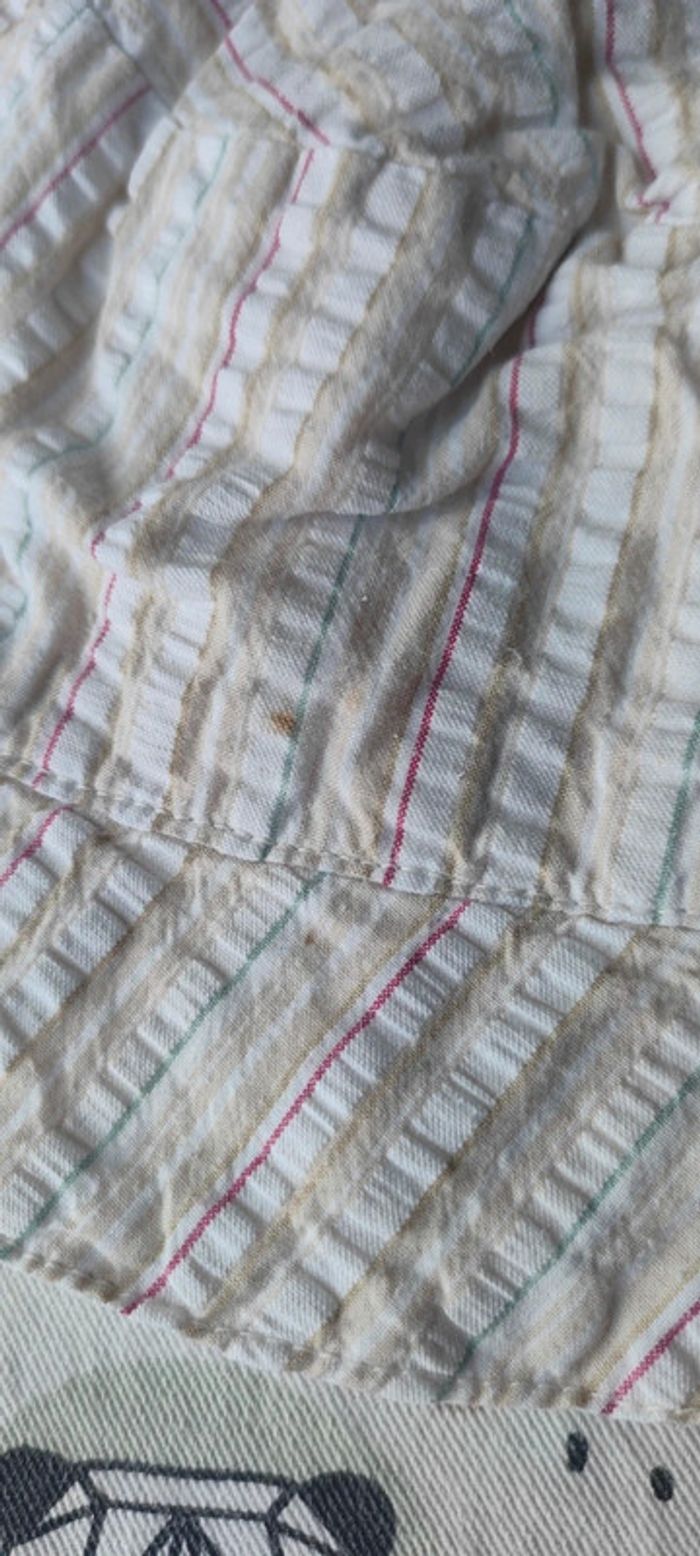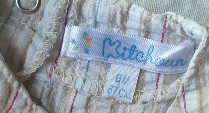 Tee-shirt rayé avec dessin de palmiers et une petite poche + bob ( petite tâche sur le bob voir photo ) en très bon état de la marque Kitchoun pour bébé taille 6 mois. #neezia33240tshirtgarçon6mois