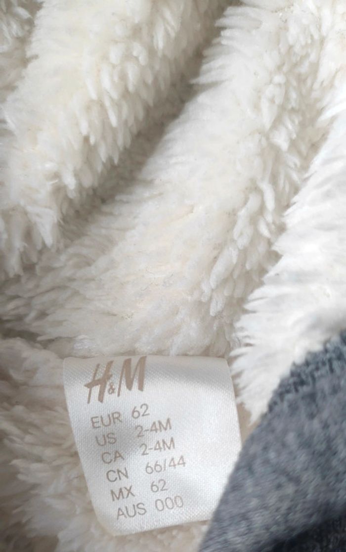 Combinaison grise avec oreille sur la capuche et fourrure blanche a l'intérieur, les manches et les jambes peuvent se transformer en moufle en très bon état de la marque H&M pour bébé taille 3 mois ( 62 cm) #neezia33240combinaisonpilotemixte3mois