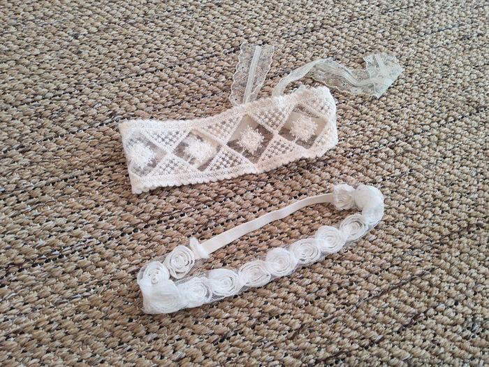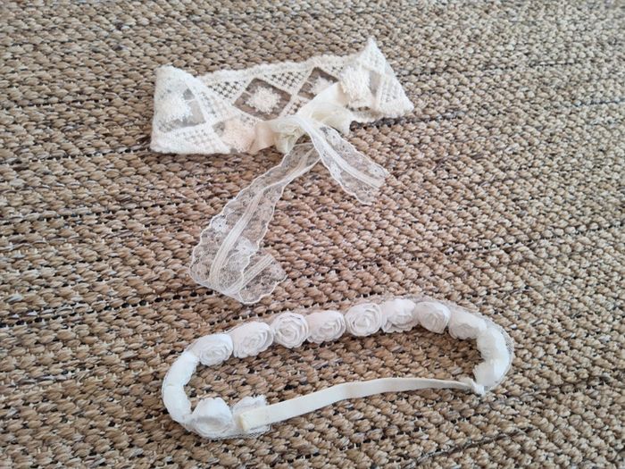 2 jolis bandeaux bébé : 1 blanc et 1 écru ideal cérémonie, baptême, mariage... tenue soignée Neufs