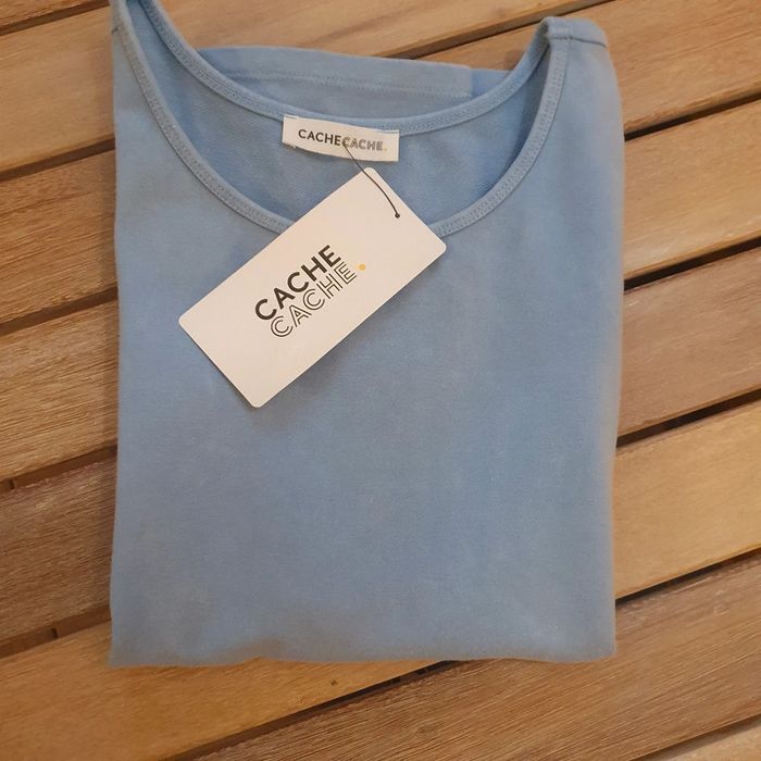 Magnifique haut Tee-shirt Couleur bleu ciel Taille XL Marque Cache-cache Neuf Composition en dernière photo Excellente qualité