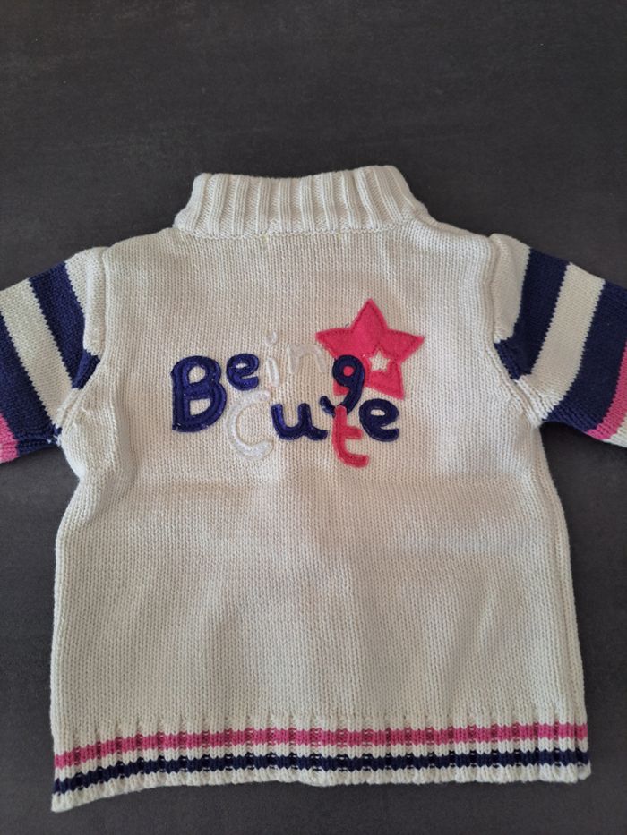 Gilet 6 mois blanc lignée bleu - photo numéro 3