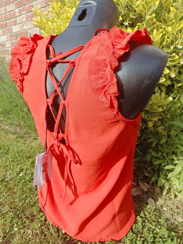 Jolie blouse sans manches Naf Naf Couleur corail Dos fantaisie