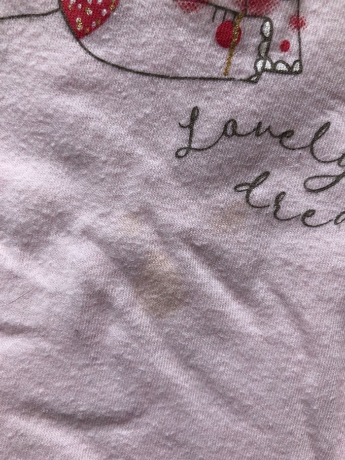 T-shirt long 9 mois. Il y a une tache légère sur le devant (voir photo)