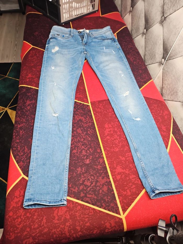 Jean homme en parfait état marque bonobo taille 34 bleu clair effet trouer