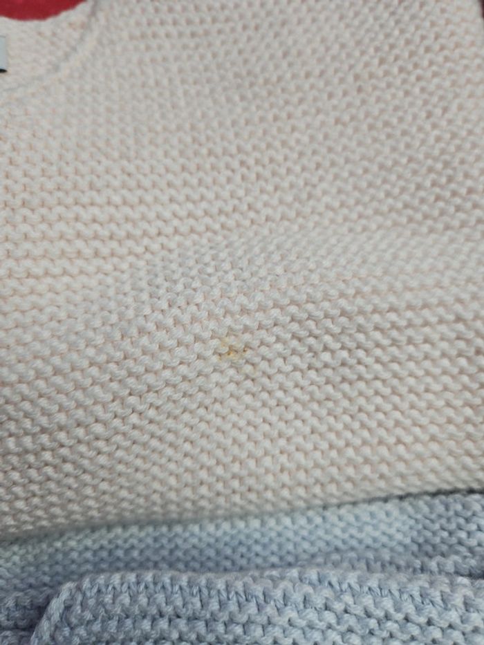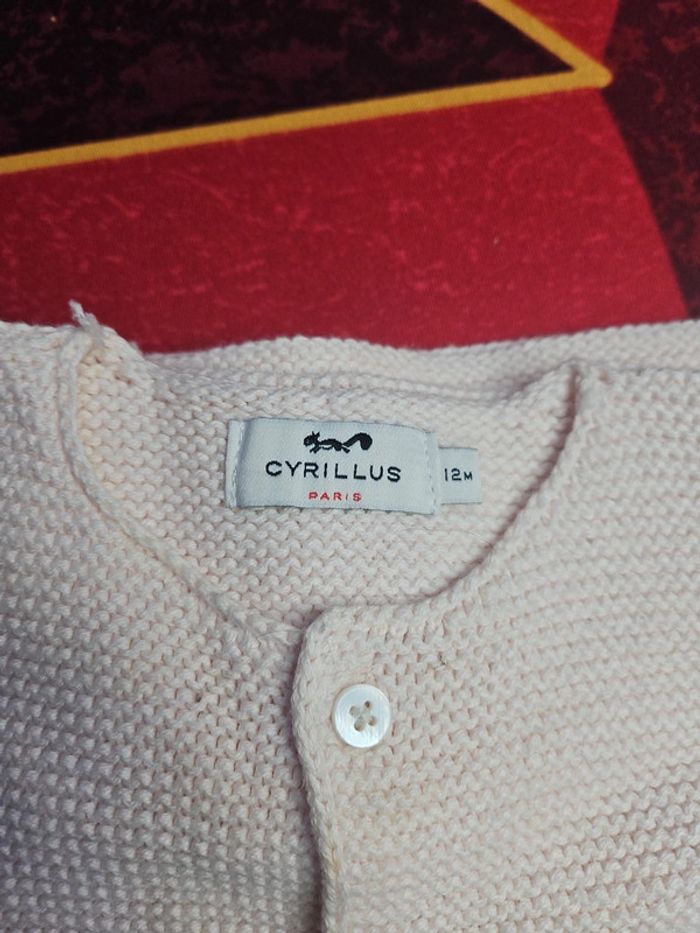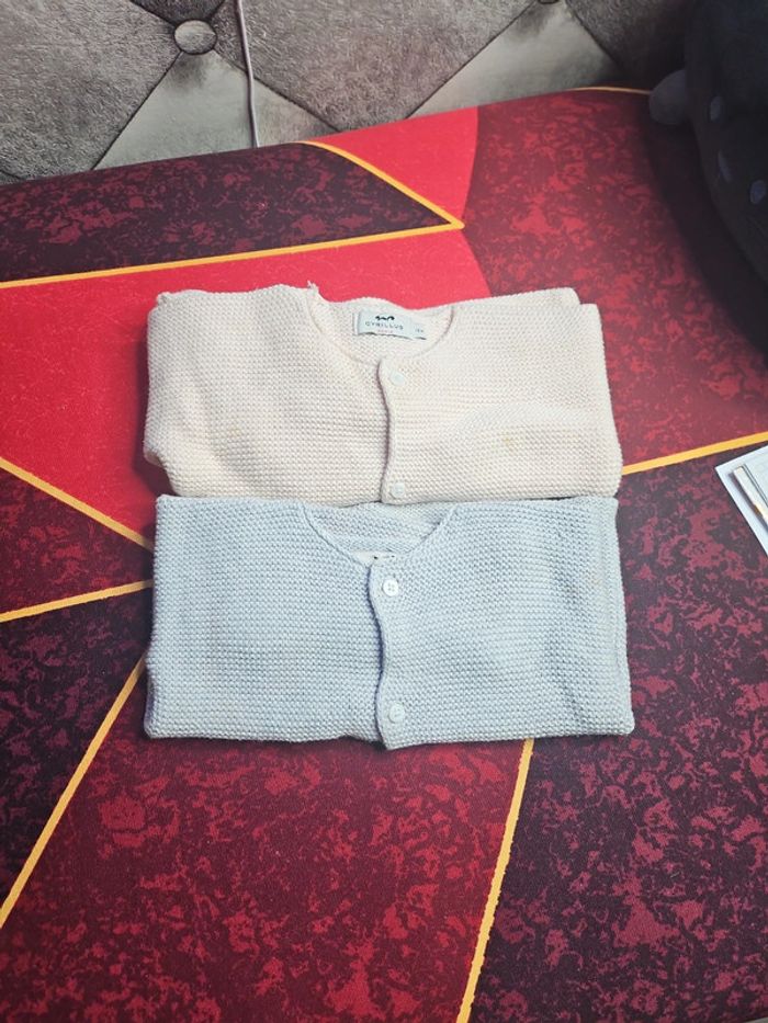 Lot de 2 gilet fille et garçon en très bin état sauf une toute petite tache sur le rose taille 12 mois