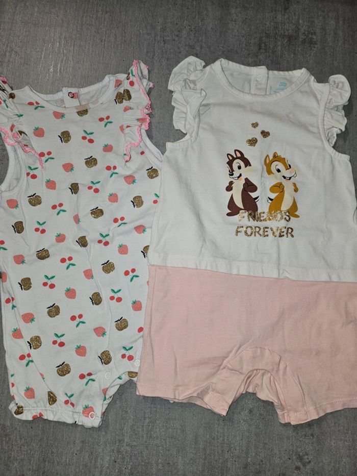 Combishort fille .. lot de 2 .. marque orchestra ... légère tache qui se voit presque pas sur les 2 ... taille 18 mois