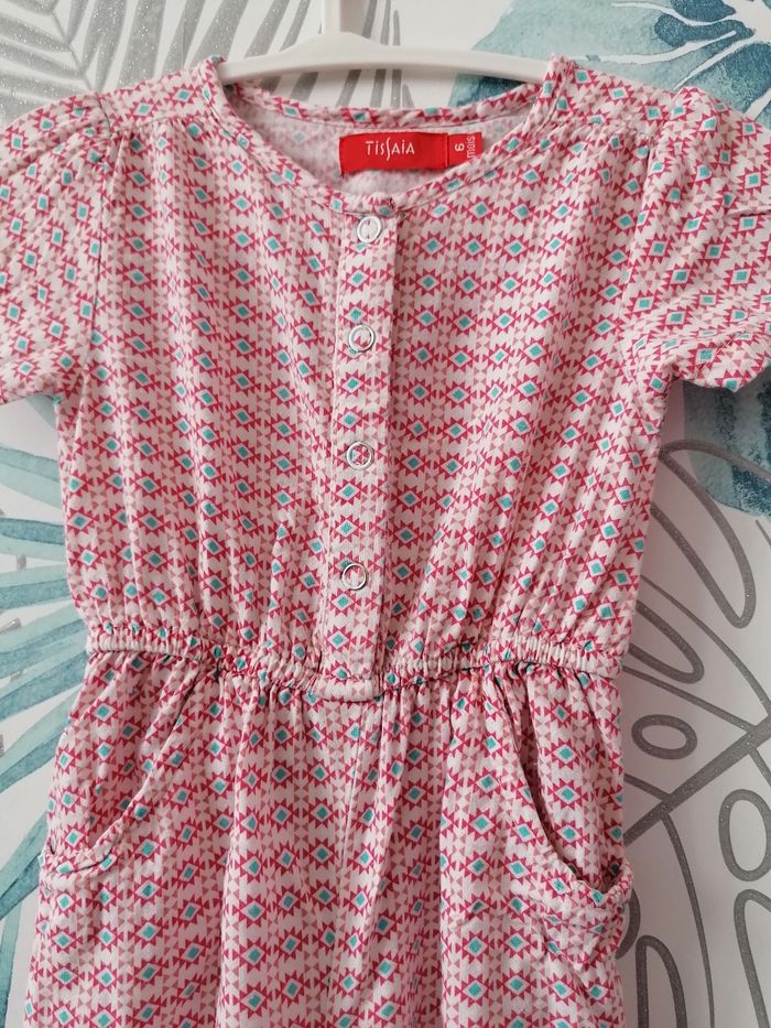 Combinaison fille taille 6 mois de chez tissaia. Très bon état juste les boutons ou le vernis part.