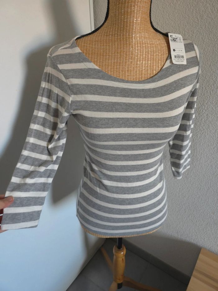 Pull femme taille S avec étiquette manches 3/4 plusieurs articles en taille s dans mon dressing n'hésitez pas à crée un lot pour regroupé vos achats 😉 (veuillez consulter mes autres articles je suis en train de m'en débarrasser) #Teeshirtfemme#pullfemme#teeshirtmancheslongues#pullmancheslongues#Teeshirtraye#pulraye#Teeshirttailes#pulltailleS#teeshirtadolescente#teeshirtleger#adolescente
