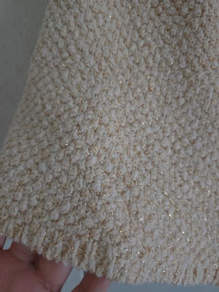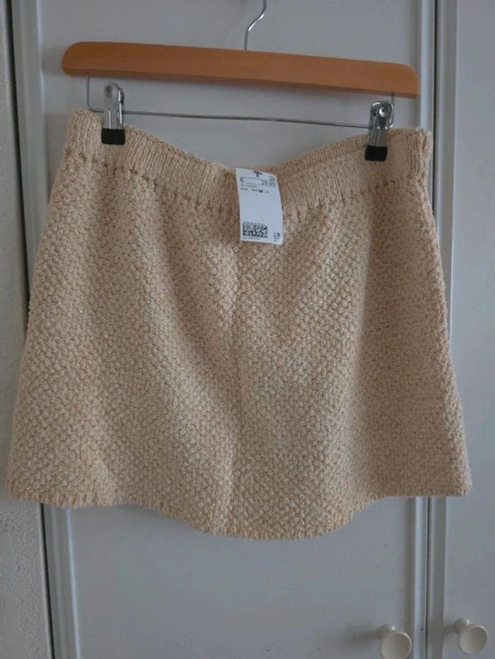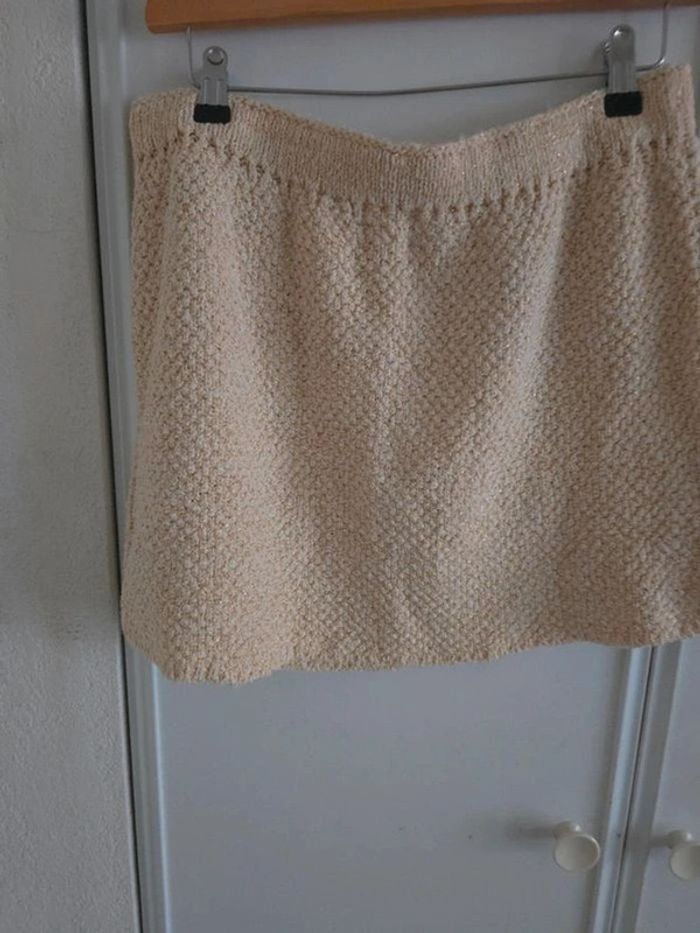 Jupe courte en maille texturée et fils doré avec étiquette taille M n'hésitez pas à consulter mes autres annonces je vide mes placards #jupecourte#jupehm#jupemailletexture#jupefildoré#jupemini#jupebeige#jupehiver#jupequatressaisons