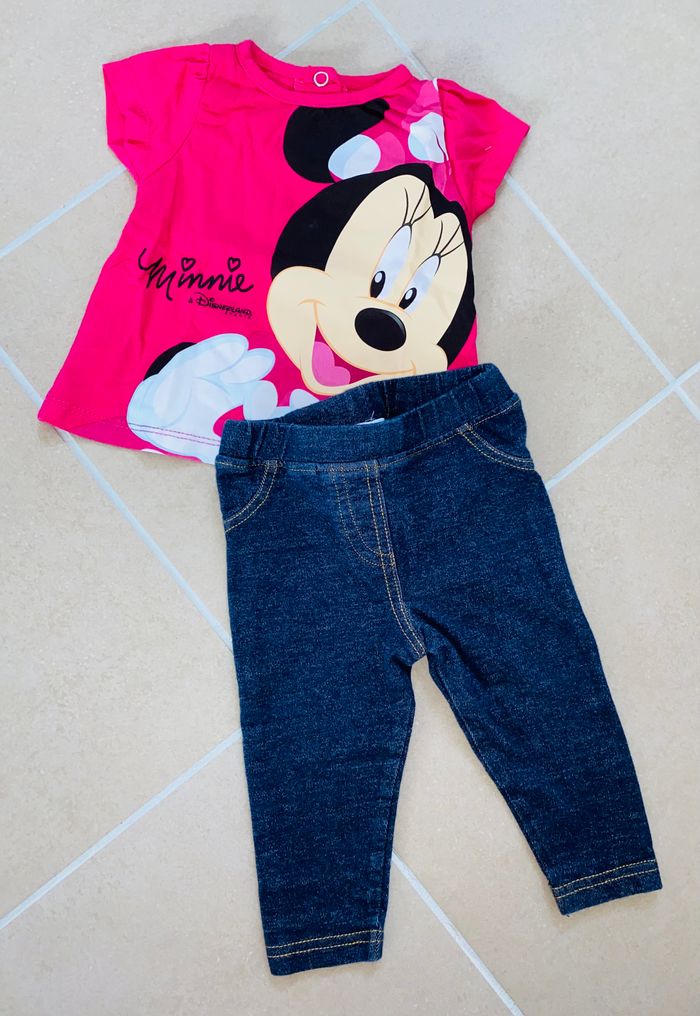 Ensemble t-shirt + jegging 6 mois / 68cm T-shirt Minnie rose fuchsia Jegging jean foncé Parfait état