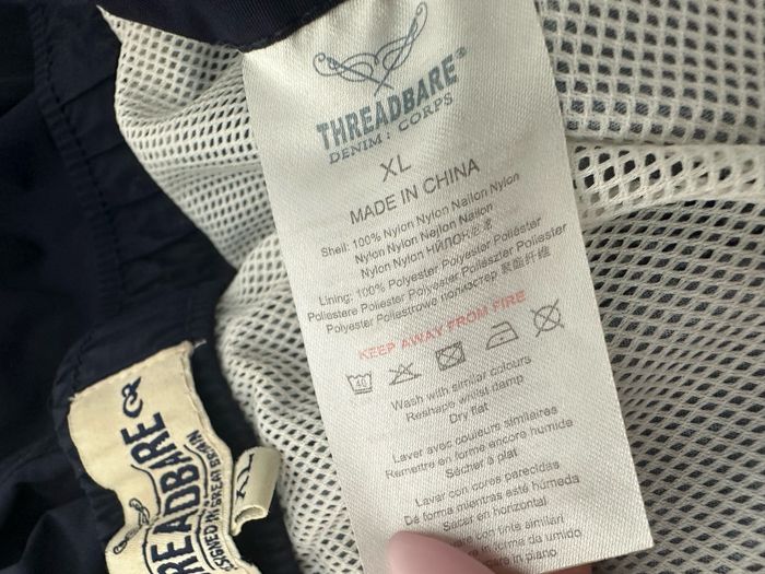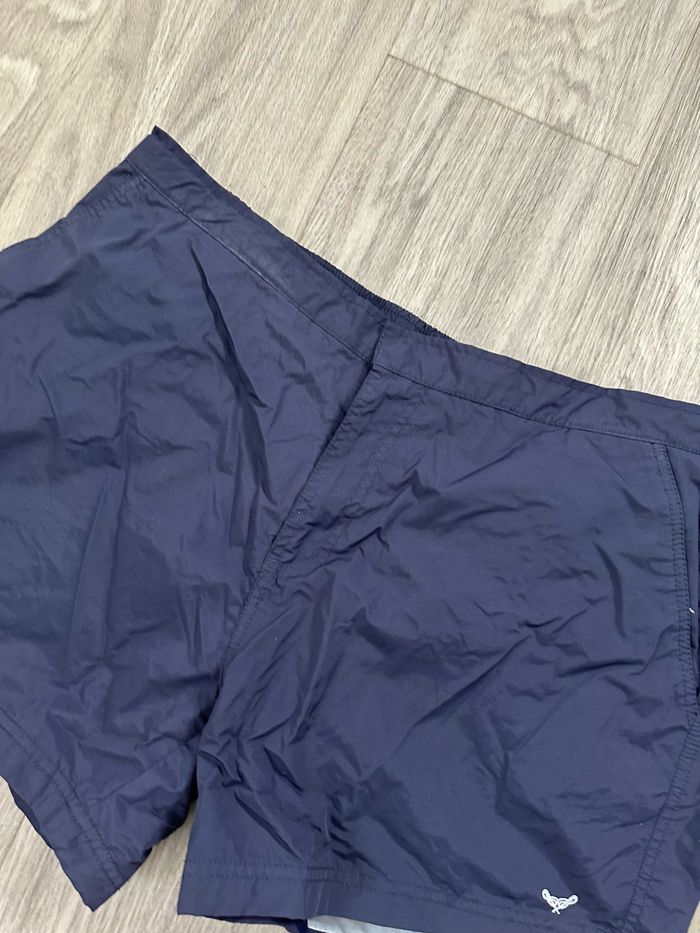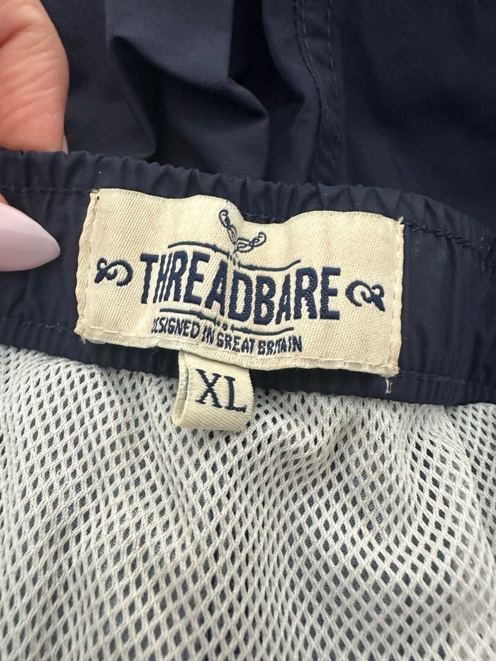 Short de bain - Excellent état - Taille XL - Bleu marine - Threadbare - Deux poches - Se ferme avec un lien et une pression - Modèle homme - Doublure en filet - Taille élastique - Nylon et polyester Dimensions: - 47 à 54cm à la taille - 37cm de long