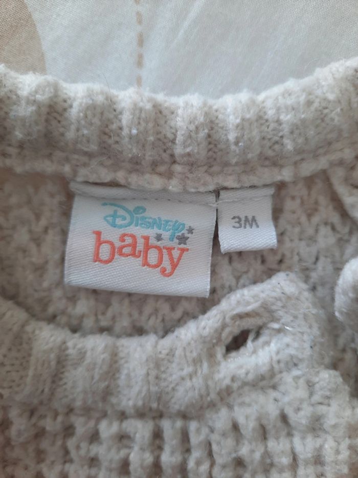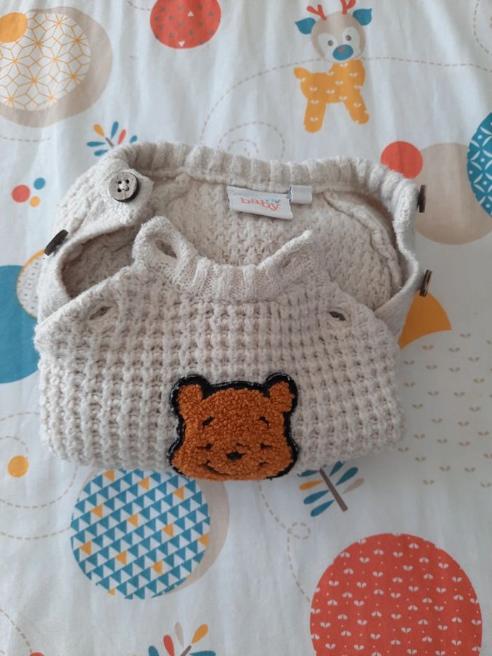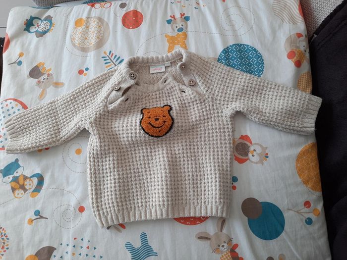 》Pull en laine avec tête de Winnie l'ourson au milieu avec ouverture à boutons au niveau du col de couleur crème En très bon état. Taille 3 mois