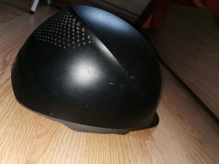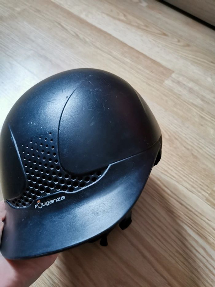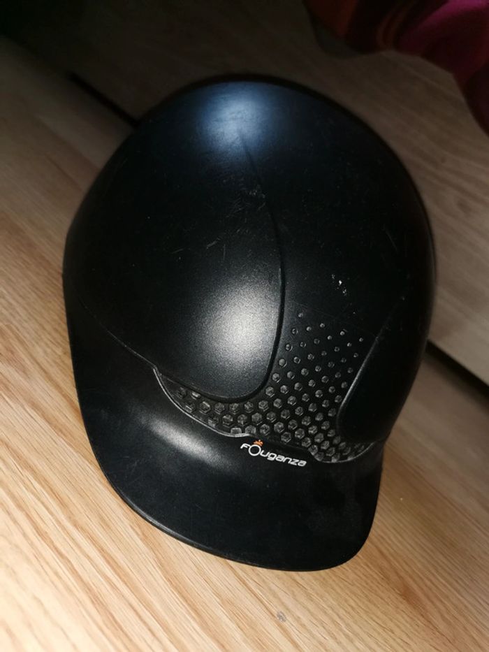 Casque d'équitation (bombe) Noir fouganza Très bon état extérieur Mousse abîmé mais ne gêne en rien l'utilisation et peut être changer (voir photo) Taille 57/59