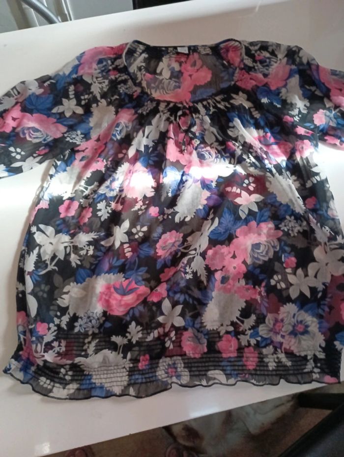 Tee shirt manches courtes blouse femme M&S taille 46 très fine transparente - photo numéro 2