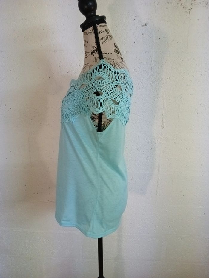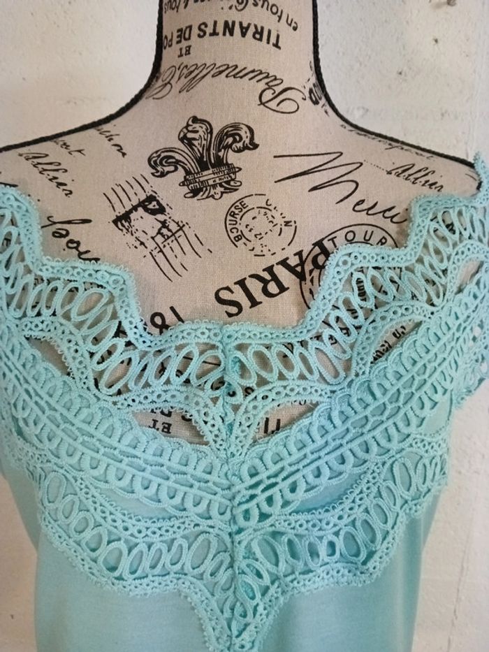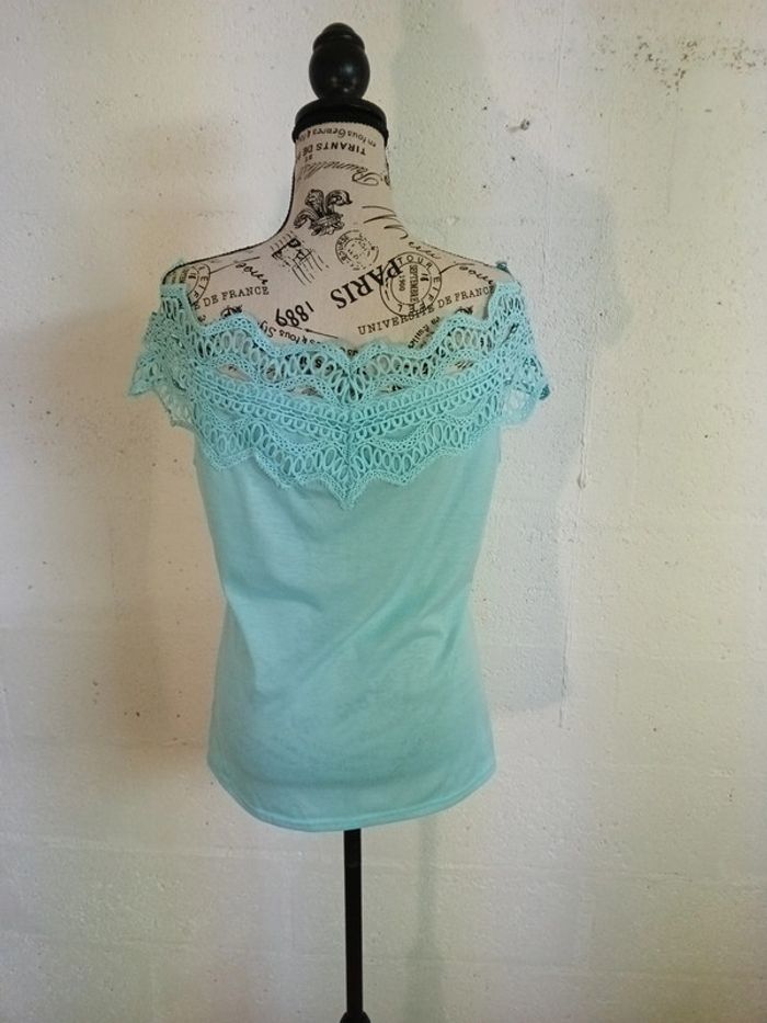 T shirt turquoise épaules degagées broderies taille L Taille L Largeur aisselles 48 cm Longueur dos 55 cm 🌈 Pensez au lot afin de limiter les frais de port mais aussi pour faire des économies car les réductions sont actives dès 2 articles 😍 🌈
