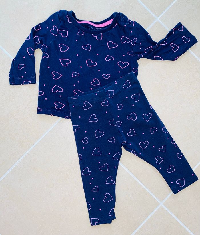 Ensemble t-shirt et legging 6 mois /68cm Bleu marine et cœurs rose Parfait état