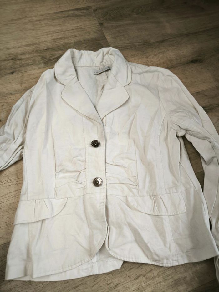 Veste de la marque cache cache en taille 4. Elle est jaunis à certains endroits cf photo #sdr0vetementsfemme #sdr0vetementsfemmet4 #sdr0vestesfemme