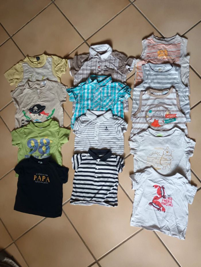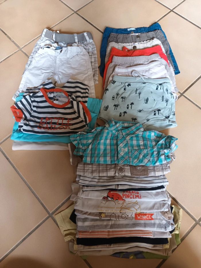 Gros lots de 25 vêtements bébé en 9 mois Comprenant : => 13 tee shirts/debardeurs => 3 barboteuses => 9 shorts/bermudas #tiitedrey_garcon_ete_9m Toutes marques : kiabi, gémo, u, kitchoun