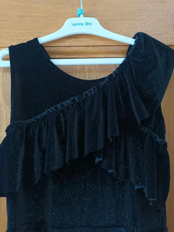 Lot été 12 ans : - 1 robe velour noire pailleté avec doublure - 2 shorts : 1 en jean et 1 legé - 2 debardeurs avec bretelles réglables (sans etiquettes) Lot dissociable