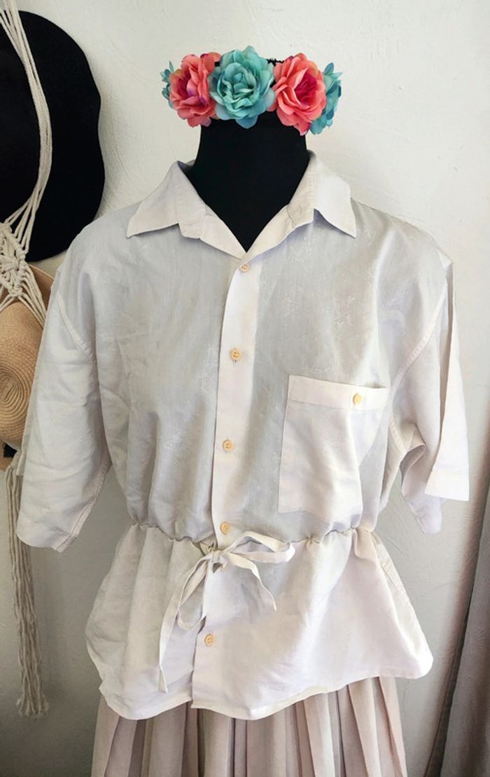 Chemise vintage upcyclée, motif skieurs Fait main Convient pour une taille S/M