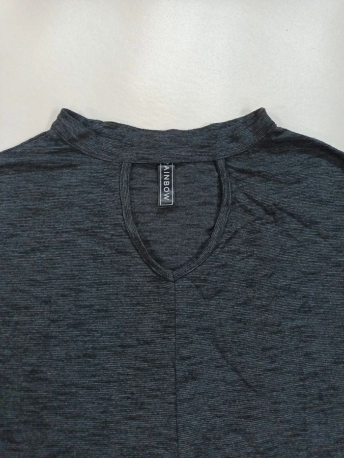 T.shirt gris foncé avec col et noeud en bas Taille 38/40 #tiitedrey_vetements_femme