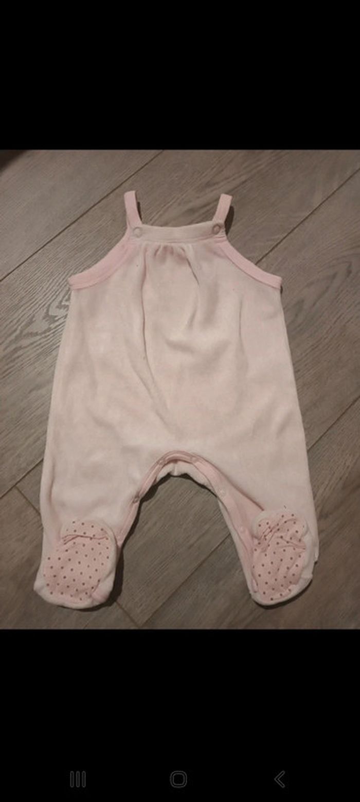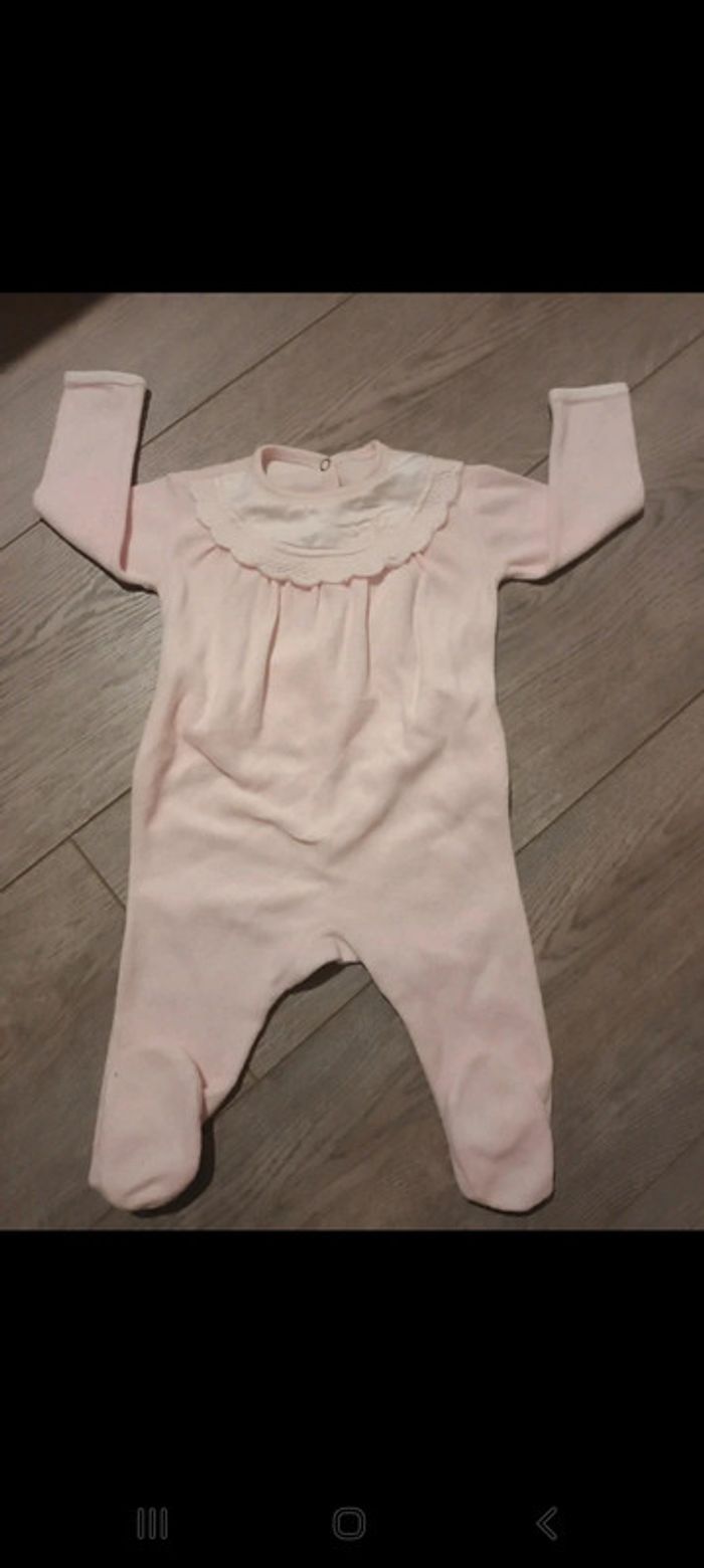 Lot de 7 vêtements en 3 mois comprenant (suivant les photos) : - 1 pyjama velour rose (sans marque) - 1 pyjama velour bretelle rose (grain de blé) - 1 bas de pyjama velour (kitchoun) - 2 bodys manches longues (kitchoun et kiabi) - 1 tee shirt violet (la compagnie des petits) - 1 enseble 2 pièces, tee shirt + robe (grain de blé) Lot dissociable possible #tiitedrey_hiver_fille_3m