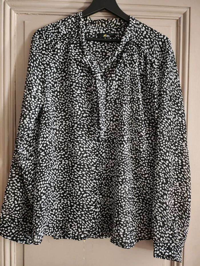 Blouse légèrement transparente noir et blanc à pois Mim Taille 44 #femme44etplus_anaa989 #femme_anaa989