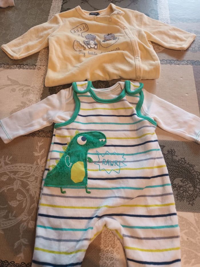 Pyjama en 1 mois velour Le vert : tee shirt intégré. Peut etre en été ou en hiver #tiitedrey_garcon_1m