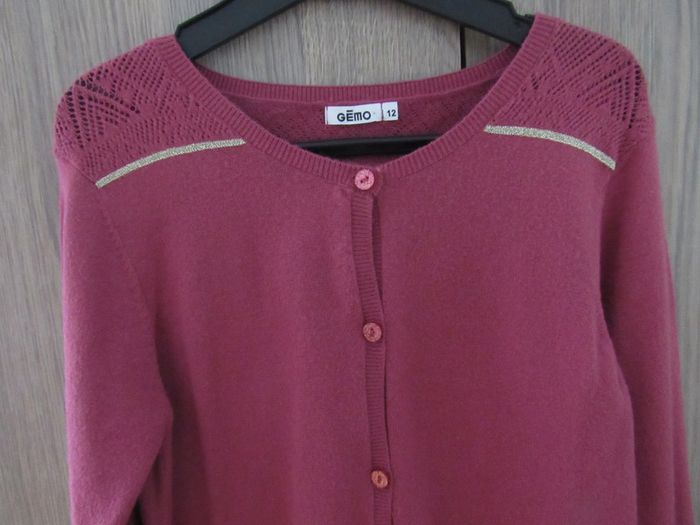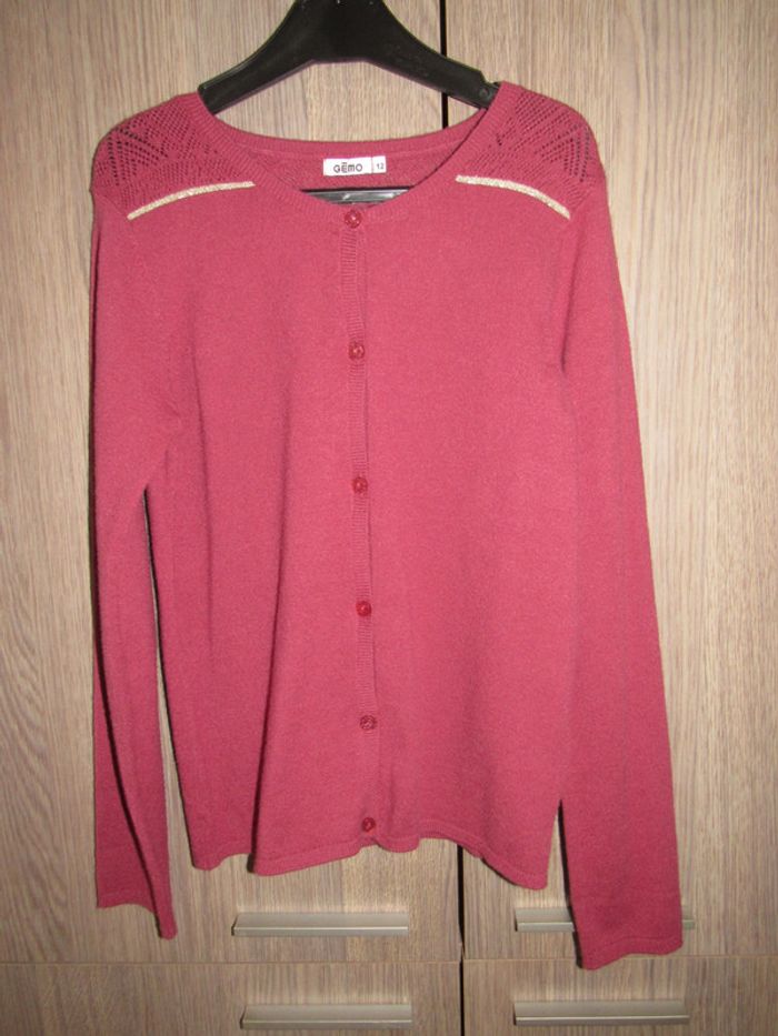 Gilet à détails pailletés et épaules ajourées rose foncé peu porté taille 12 ans / gémo 🌼 🌼Toutes mes annonces dans cette taille sont ici 🌼🌼 :#shannon59fille12ans