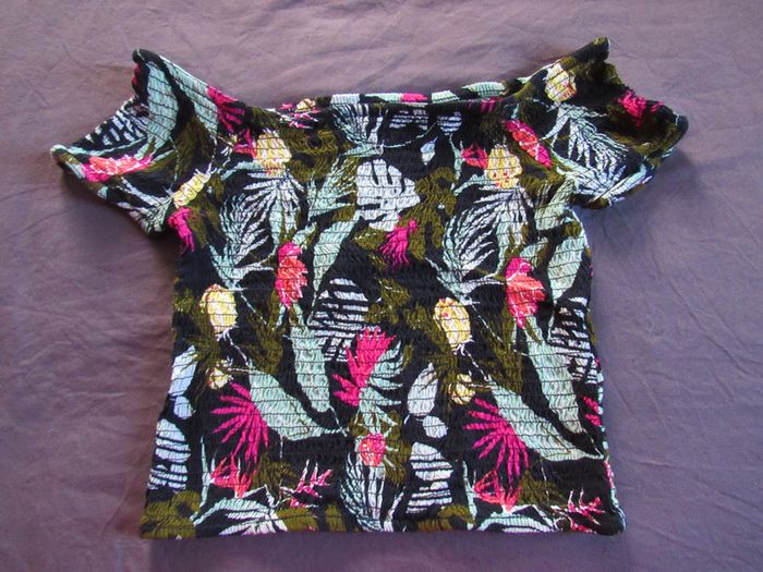 Top smocké - fleurs Encolure bardot Manches courtes kiabi - taille xxs (12 ans ) 🌼 🌼Toutes mes annonces dans cette taille sont ici 🌼🌼 #shannon59fille12ans
