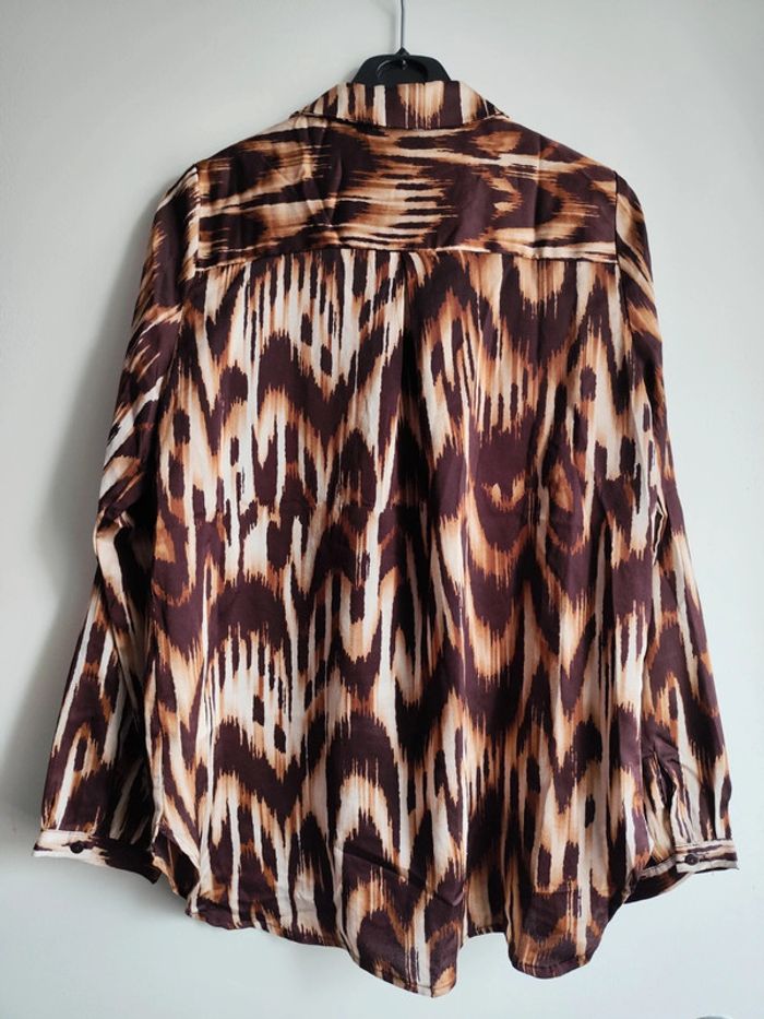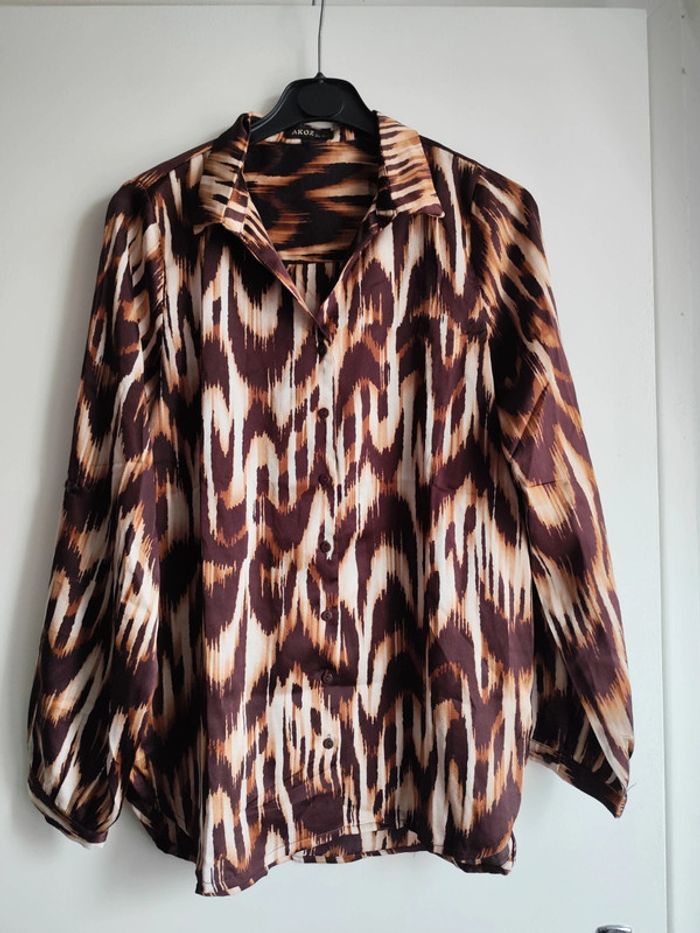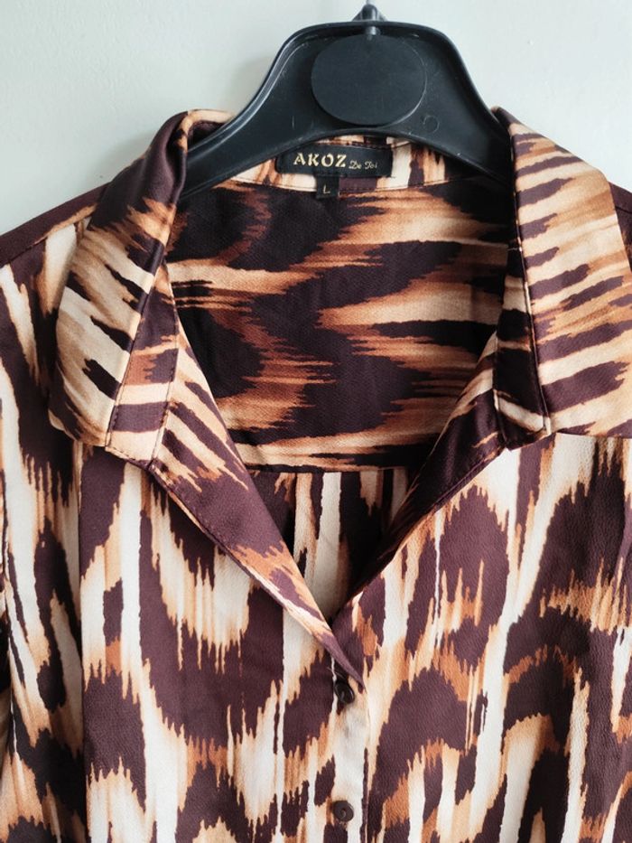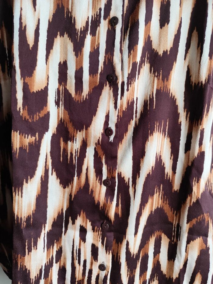 #femme40samcec1802 Chemise fluide marron beige, boutonnée sur toute la longueur. Taille L Tissu non extensible, n'hésitez pas si besoin des mesures