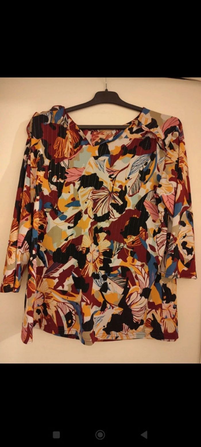 Blouse à motifs multicolores manches 3/4 taille 42 - photo numéro 4
